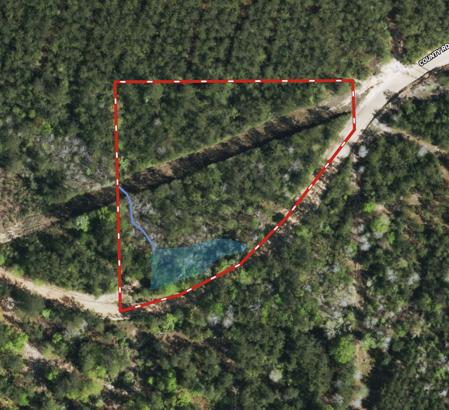 The majority of the property is situated upon a gradual ridge, which would be perfect to underbrush and open up. Towards the bottom of this property is a 1/2 acre depression, that is fed by year-round ground water. This area currently only holds 1-2ft of water, but choice digging and clearing could easily turn this spot into a year-round pond! A power line runs through the north portion of this acreage and provides a great road to travel upon.