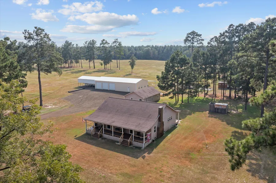 This meticulously crafted & customized 3 bedroom, 1 bath farmhouse boasts 1,862 sq. ft. of living space, perfectly nestled on over 111 acres of unrestricted land. Complete with a spacious basement and a three-car detached garage. The guest unit features a full bath & kitchen and acts as a great addition. Outdoor enthusiasts will love the extensive amenities, including a 3 bay workshop, an RV shed w/hookups, & several storage sheds for all your equipment. There is a fabulous entertainment pavilion perfect for hosting gatherings amidst nature's beauty with an outdoor kitchen. The property features 30 acres of improved pasture, wooded land & 3 serene ponds, this property is a haven for wildlife and a perfect spot for fishing or relaxing by the water. The northern boundary is graced by Turkey Creek, adding to the natural allure. Additionally, enjoy peace of mind w/a whole-house generator inc...