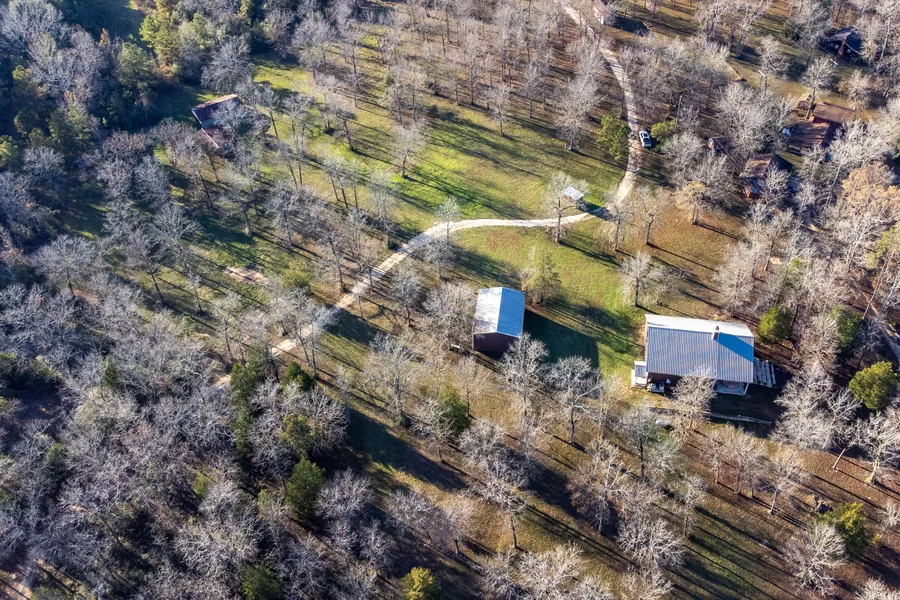This ideal recreational ranch property offers an attractive 5BR/3.5BA open design lodge styled home with loft, a large garage/workshop, several barns and outbuildings, a private spring-fed two-acre fishing lake, and 49.88 acres of mixed woods for hunting, wildlife viewing, and further potential building projects.