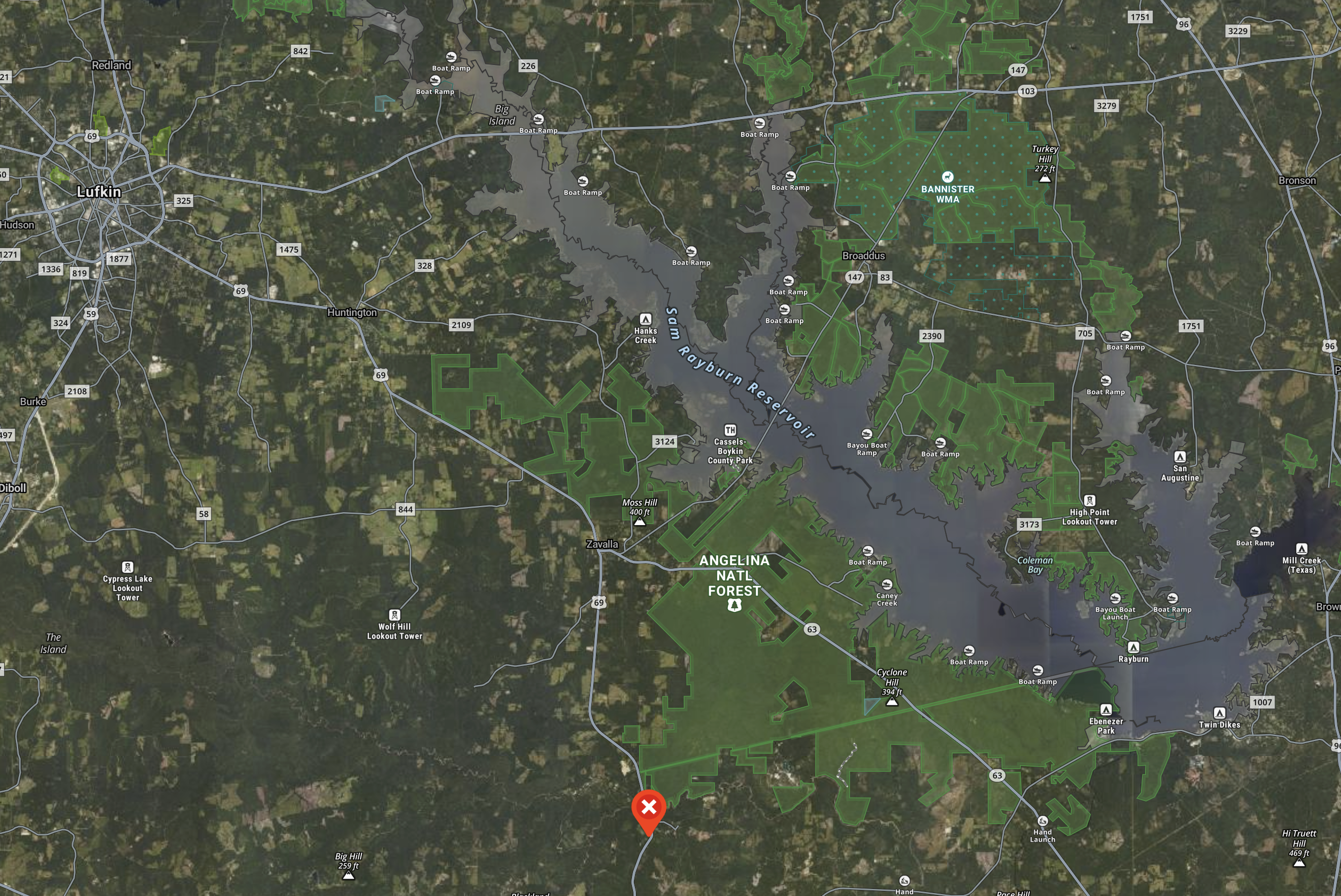 20 minutes from Lake Sam Rayburn; a nationally known bass fishing lake