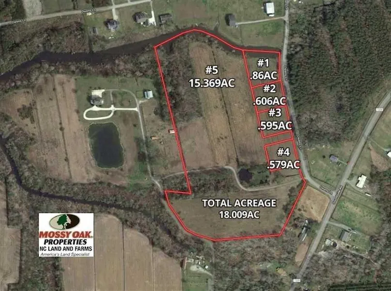 This entire tract is 18 acres and it consists of 5 separate parcels. Lot 1 is .86 acres, lot 2 is .61 acres, lot 3 is .6 acres, lot 4 is .58 acres and lot 5 totals 15.4 acres. All lots are cleared and ready to start the building process. The property is located just off Soundside Road on the north side of Tyrrell County. Tyrrell County is the easternmost county on the Albemarle Peninsula and each of these parcels has a view of the Albemarle Sound. The river town of Columbia, North Carolina is the county seat of Tyrrell County and is 9 miles from the lots. For beach goers and shoppers, the Outer Banks of North Carolina are 39 miles to the east. There are small regional airports located in nearby Manteo and Edenton and larger ones in Greenville and Elizabeth City. Highway 64 is the main thoroughfare between Raleigh, North Carolina and the Outer Banks. Highway 64 can be accessed in just a few minutes from either end of the Soundside community. Access to the property is from Owens Lane. Each of the five parcels has frontage on Owens Lane. Lots 1 and 5 have water frontage along a navigable creek that leads to the Albemarle sound. There are no structures or improvements on any of the parcels and there are also no covenants or building restrictions. The owners are offering these parcels as individual lots or as an entire package. There are many options and opportunities here. Buy the entire tract and own a creekfront estate sized parcel with a stellar view of the Albemarle sound or maybe one of the smaller lots is exactly what you're looking for--a weekend getaway 45 minutes from the beach. A well-maintained gravel road bisects lot 15. For the investor there may be potential for additional subdivision here. Over 12 acres of this property were at one time cultivated farmland. It can easily be brought back into production for gentlemen farming or fenced for livestock. There's some incredible freshwater fishing in Tyrrell County and the pond on lot 5 could be managed to be some of the best around. For the naturalist, Alligator River National Wildlife Refuge, Pocosin Lakes National Wildlife Refuge, Palmetto Peartree Preserve and thousands of acres of NC game lands can be accessed within 5 to 15 minutes of this location. Don't miss this opportunity.