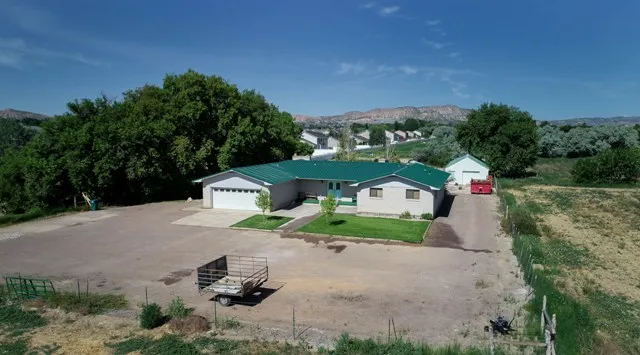 Great in town location on this large home with acreage. Spacious rooms-laundry is in one bedroom. Detached garage-absolutely wonderful yards with 5 shares Ashley Central and decreed water. Propane tank is leased through Searle. There could be two frontage building lots-one has some utilities on it.