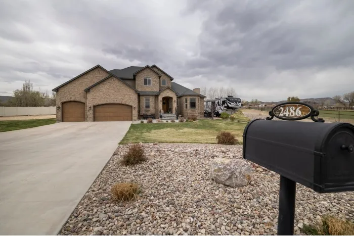 This home is located In the only gated community in Vernal on 1.38 acres. Custom cabinets with granite counter tops, solid core hardwood doors, double ovens, master bedroom on the main level, 2 stair ways leading to the upstairs, walk in closets in every room, theater room, game room, and plenty of storage on every level.