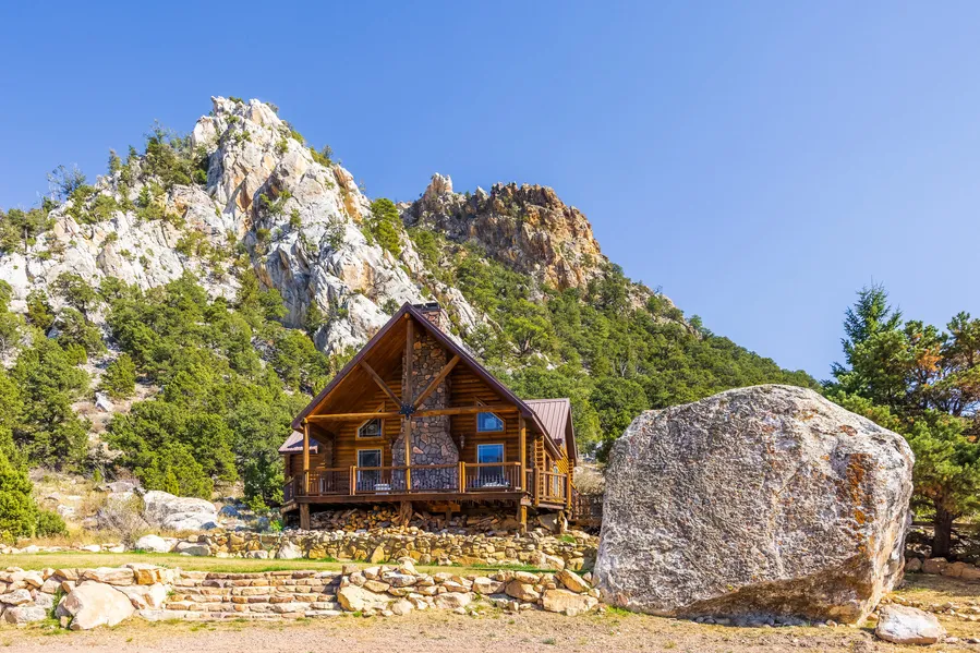 Exquisite finishes in cabin on 14 acres. Great Hunting and Fishing on Whiterocks River. Solid Wood doors and floors, Bosch dishwasher, well, propane, electricity, Covered Deck, Cozy Rock Fireplace, Survey, located at the base of the White Rock formation. Sold mostly furnished with professional interior design and furnishings.