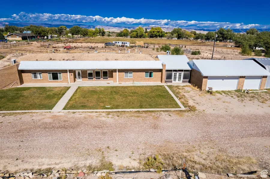 Charming Earth Berm Home on 12.08 Acres Welcome to this unique single-level earth berm home, built in 1997. This 2,567 sq ft single level residence features three bedrooms and two bathrooms, perfect for comfortable living. The house boasts a sturdy concrete roof, ensuring durability and low maintenance. Enjoy the benefits of energy efficiency. The open-concept layout invites natural light, creating a warm and inviting atmosphere throughout the living spaces. Outside, the property includes water shares, wheel line, making it ideal for gardening or agricultural pursuits. The attached three-car garage provides ample storage and convenience, while a separate two-car shop and four-car carport offer additional space for vehicles and hobbies.