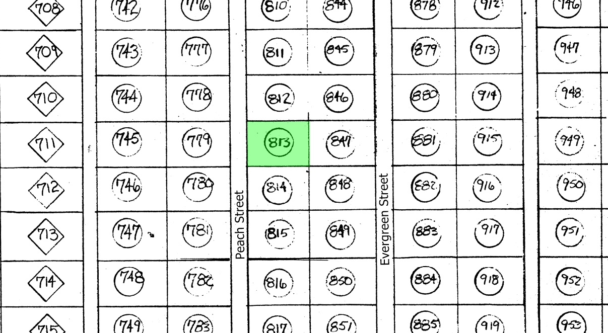 0.13 mile later Lot 813 will be 135 yards to your left.