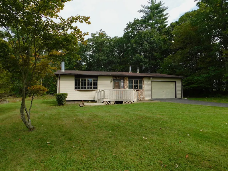This updated tastefully designed Ranch in Pine Bush , NY on beautiful country views 4.5 acres lot offers two bedrooms , large living room with fireplace, 2 full bathrooms, 1 office room, washer and dryer, kitchen with appliances, skylight, wall to wall carpet and hardwood floors, front porch, large glass screened back porch with slide door, Attached garage with blacktop driveway, large aluminum storage shed. This is HUD owned home (FHA Case #371-452024), it is Eligible for FHA 203K and is being sold AS IS. With some TLC this can be a unique opportunity to own a home with a character at an affordable price. Agents and buyers, please be sure to visit HUDHomeStore.com website for availability and important information regarding purchasing a HUD home.