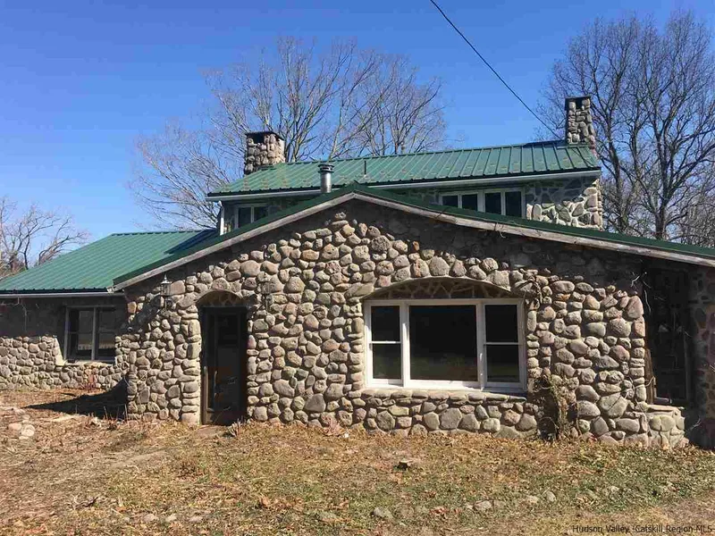 Bring your imagination! A very unique stone house with Catskill Mountain views next to a sparkling trout stream awaits someone with vision to turn it into the perfect country getaway. This house features a bluestone entry room and a massive stone fireplace in the living room as well as a sun room perfect for morning yoga. Much of the house has been stripped to the studs and is waiting for you to add the interior touches. The property also includes a large barn with a new roof and a smaller shed perfect for gardening or chickens. Property is sold AS IS.