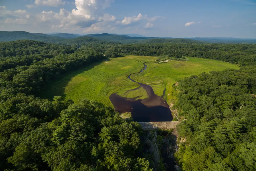 Cottages along the meadow-lands of what used to be the shores of historic Lake Nottawassaga (now known as Honk Lake, now empty) with the Rondout Creek winding through the meadows are at the foothills of the Catskill Mountain high peaks above Napanoch. See the aerial video at this link: These three cottages are out of "Hansel and Gretel" and have been privately owned for over 75 years so this is the first time they have been offered to the public. This unusual gem is a broad meadow surrounded by the hills of Wawarsing and has the Catskill Mountains in the distant view. The Rondout Creek runs through the midst of the meadow and out to the bedrock gorge where the magnificent waterfalls and pools are hidden. Three charming and well maintained cottages are on the highlands above the Honk Lake meadows with panoramic views to the west across to the Catskills beyond the Rondout Creek. A staired ...