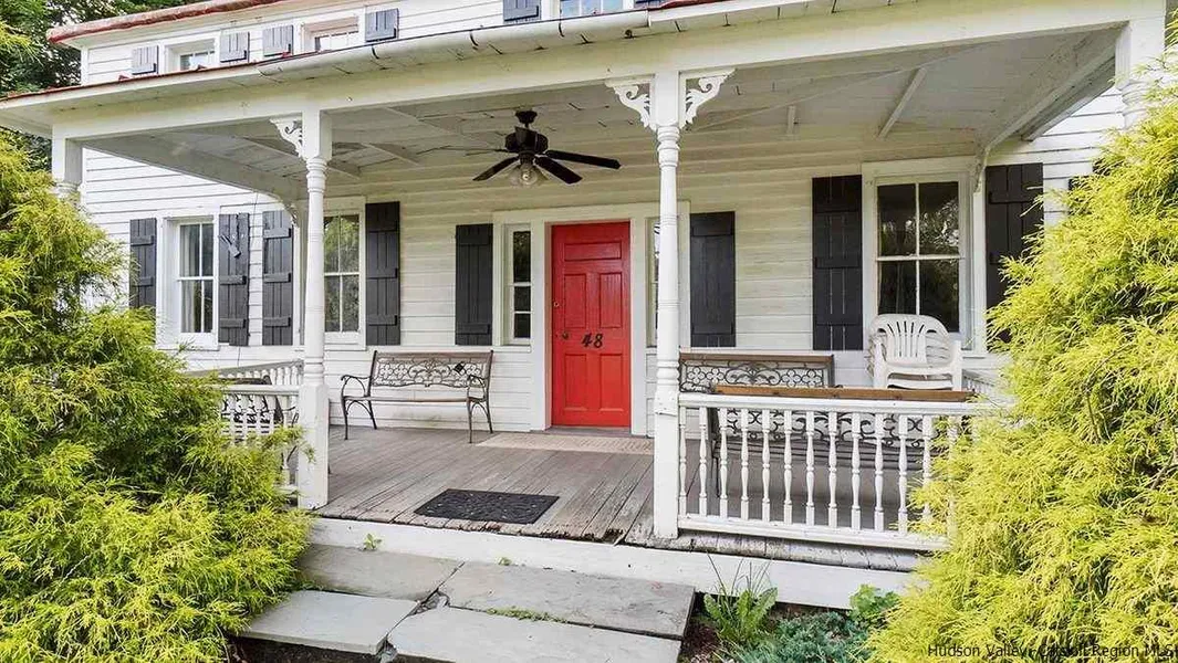 Antique Colonial Home with Red Metal Roof...gracious center hall colonial home with classic elements dating back to 1875. Lovely wide board floors with characteristic warmth add to the ambiance. Just beyond spacious eat-in kitchen, plenty of space for conversation while enjoying a coffee with friends. The right amount of "togetherness" at dining table within reach of the chef! Two wood-burning fireplaces will create warmth and conversation starters. First floor bedroom has flexibility, could be a great home office with it's door to the outside. Full bathroom is nearby. Second floor has 4 additional bedrooms, full bathroom & plenty of closet space, windows all around allowing natural light & sunshine. Wonderful RED metal roof makes this home instantly recognizable to those looking for their "air b & b rental" in Beautiful Bearsville...history of successful short term rentals for this home, known as "The Bearsville Inn."