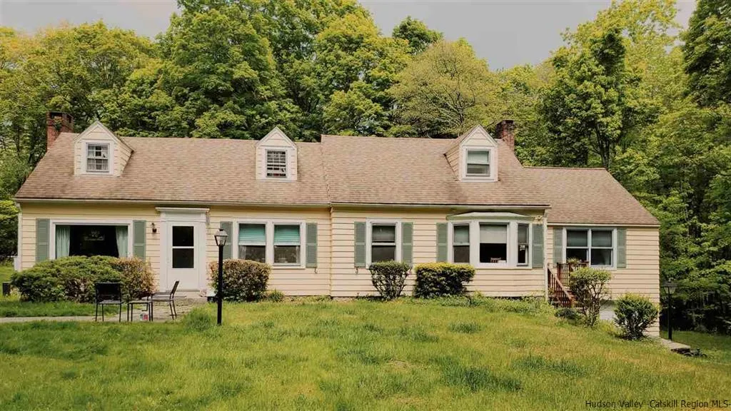 The house sits on 3 acres nestled in the woods, surrounded by beautiful trees creating a magical forest ambience - perfect for relaxation, contemplation, and gardening. The home, built in the 1940s, is presently set-up as a two family dwelling providing an opportunity for supplemental income. Unit 1 has 2 bedrooms. The living room has hardwood floors and brick fireplace. The fully carpeted master bedroom has a cathedral ceiling with beams, walk-in closet, fully tiled master bath, lots of light with views to nature outside. The large second floor bedroom is fully carpeted, with built-in dormer wall drawers. Cross windows for fresh air ventilation. In Unit 2: the main floor has a living room with fireplace , kitchen, front sitting room, full bath. The second floor has 2 bedrooms and half bath. Both units have screened porches. This house can be converted to a single family, 4 bedroom, 3.5 ...