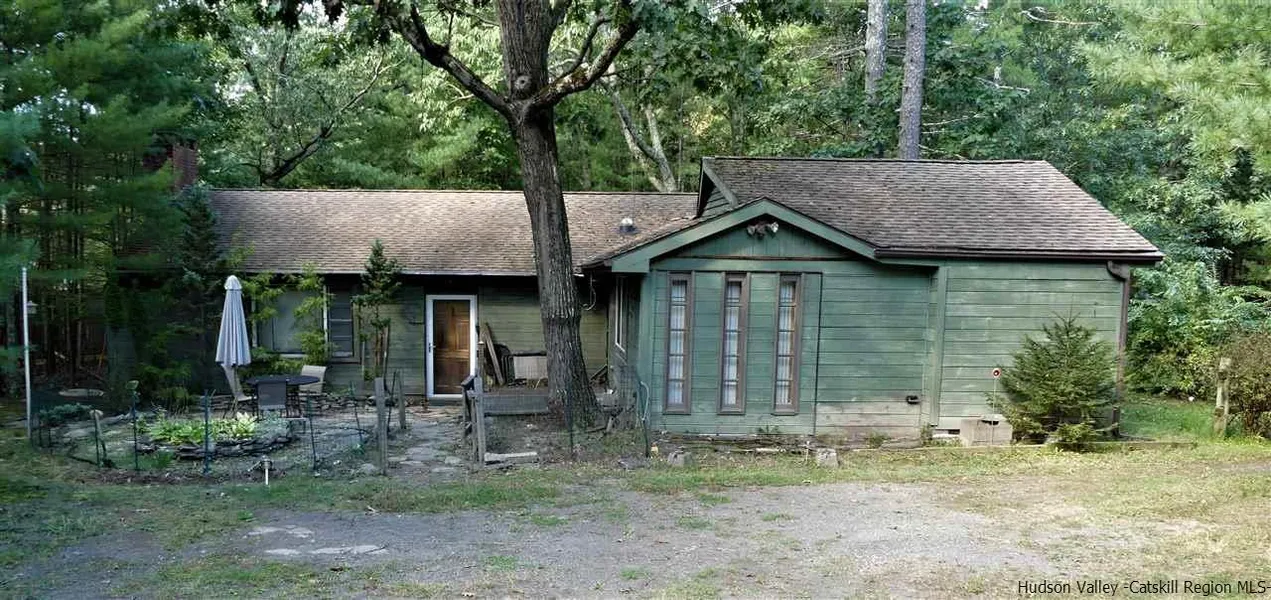 Location, location, location! Come see this utterly charming property, just minutes to the center of Woodstock village, with incredible potential! This characterful 2 bedroom, 2 bath home, in need of updating and renovation, offers plenty of room for expansion, to build a studio, home-office and/or pool. Accessed via a private driveway, features include a spacious, light-filled open concept living/dining room with a cathedral ceiling, beams and attractive feature stone fireplace. Nestled in the woods and with the benefit of low Hurley taxes, the property contains two separately deeded lots, being sold together, with a total of 2.4 acres. An exciting opportunity for a buyer with imagination, to create the dream upstate home in fabulous location! Priced to sell!! Being sold as-is.