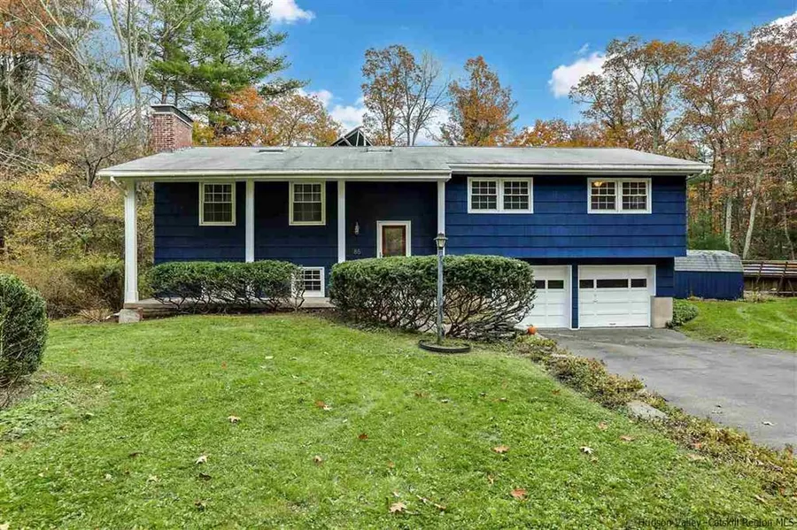 A charming 3 bedroom, 2.5 bath home with 2 car garage. Close to town with the feel of a retreat, away! At the end of the cul de sac, this property includes the home on .47 acres and an additional 2-acre wooded lot to enjoy. (Taxes $486/year). The property offers an open floor plan, The unique floor plan has the kitchen, dining room, and living room with a fireplace. A few steps down to the enclosed porch that overlooks the beautiful backyard with gardens, berry bushes and flowering trees. Step out to the above ground 18X36 pool. The bedrooms are spacious. Baths are updated, main bath with laundry shoot. The home is freshly painted and has hardwood floors. The finished lower level has an office, a den and a family room to enjoy! Convenient municipal water and sewer. So much to see here!
