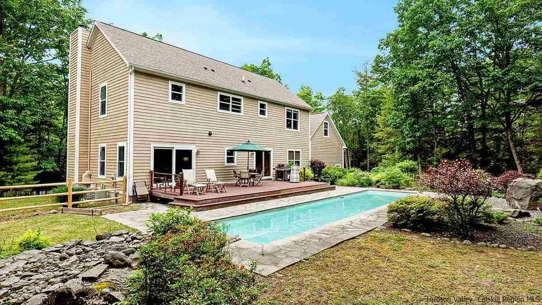 Welcome to the Evergreen Colonial, privately set on 2.9 acres and nestled in the trees, awaits this sprawling 3,240 square foot, four-bedroom, three-bath home. This property offers comfortable and lux living. A smartly designed floor plan with several spaces to relax and entertain; sit by the wood-burning fireplace and prepare meals in the open kitchen. Enjoy an additional living space and dining area with sliders to the pool and gardens. The first floor also offers a bedroom and a full bath, an attached two-car garage, and mudroom entry. Upstairs, an oversized primary suite includes a walk-in closet and a spa-like bathroom. There are two large bedrooms adjacent to another full bathroom and a laundry room. A tucked-away bonus room adjoins a meditation space with tatami mats perfect for a home office, playroom, or guest quarters. There is ample closet space, natural light, and high ceilings. Outdoor features include: a well-maintained gated and alarmed saltwater pool mature gardens, mosaic stone patios, decking, and a yard perfect for outdoor activities and friendly gatherings. This meticulously maintained home offers improvements: a 10,000 BTU automatic generator, 3-zone central air, a new sump pump, a water heater and furnace, and UV and water filtration system. The pool has a new surrounding fence, furnace, filter, and sensor alarm. There is an attached two-car garage with an epoxy floor, built-in cabinets, and a pulley system for storage. The home has an ADT security system with extreme temperature and water sensors. Dont miss the opportunity to own this magnificent home.