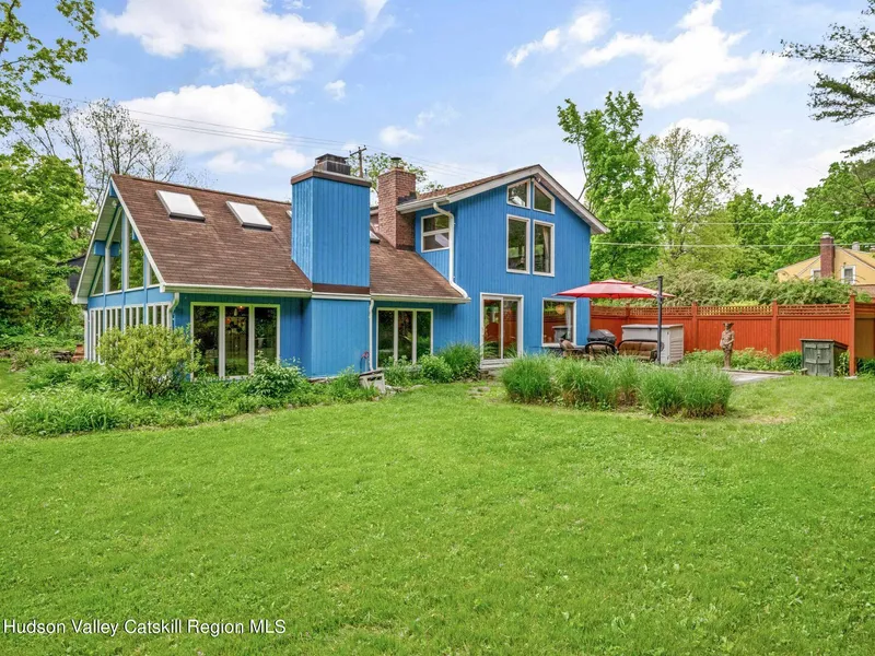 Bordering the stunning Plattekill Creek (FEMA update *property is not in a flood zone, paperwork available), which is stocked with trout by New York State, discover serenity in this captivating, contemporary home situated on over 2 acres. Embrace a life of unparalleled tranquility amidst a verdant tapestry of nature that is perfect for unwinding and entertaining in equal measure. Enter into a thoughtfully designed layout with over 3.000 square feet. The home offers plenty of wonderful and bright living space downstairs as well as the warmth of two fireplaces and radiant heat flooring, a renovated kitchen with bar, a half bath and a large, open den facing the gorgeous and green private backyard. Upstairs are two primary bedroom suites with additional living space in between. There is an additional room perfect for a visiting guest, office, or an artist's studio. Venture outside and explor...