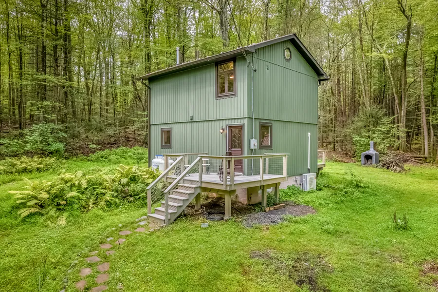 Nestled in the woods off a private, quiet road, is where you'll find this cozy retreat. Newly renovated, this home is a nature lover's dream, blending modern comfort with the beauty of its natural surroundings. The open-concept kitchen, dining, and living area is thoughtfully designed for both everyday living and entertaining. A wood-burning stove enhances the inviting atmosphere, making it a great spot to relax on chilly evenings. The primary bedroom features an ensuite bathroom and a private balcony-your own peaceful haven to enjoy morning coffee while soaking in the tranquil scenery. The home's comprehensive renovation includes a new kitchen, bathrooms, heating/cooling and electrical systems, as well as new flooring, windows, siding, stairs and decks, making it completely move-in ready. There is also a whole house generator ensuring convenience and reliability in every season. The bac...