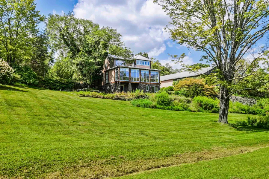 Let's start with the house. The mudroom entrance is bedecked with handcrafted elements made by a local artist/craftsperson who also created the custom kitchen cabinets. There is a bit of whimsy in the design as well as graceful curves in this functional layout. A little bit of magic and surprise lies within an understated country kitchen! Looking forward from there one is drawn to the wall of windows in the living room. Awash with light and overlooking a beautiful vista of meadow and woods beyond, this room is fabulous both day and night. Great for entertaining or sitting alone taking in the views and cozying up to the stone fireplace in cooler weather. Around the corner is a formal dining room for intimate gatherings. There is a traditional front entry door between the dining room and kitchen that leads out to the massive screened in porch with skylights and a bluestone floor. Listen to the peepers from here in Springtime.