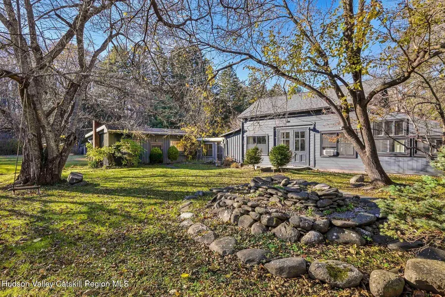 A truly rare and wonderful opportunity awaits with this enchanting Woodstock homestead property located in the historic hamlet of Bearsville, just moments from the vibrant heart of Woodstock, NY. This serene, magical retreat is surrounded by beautiful trees, lush greenery, and the soothing sounds of the Sawkill stream, offering a tranquil escape from the everyday. The property features three unique buildings, each an architectural gem with its own character, set amidst expansive grounds that include a large, open garden ready for sustainable living—perfect for planting, raising chickens, or simply enjoying the peace of the countryside. This idyllic setting invites endless possibilities for live-work scenarios, creative spaces, or a multi-generational family compound.