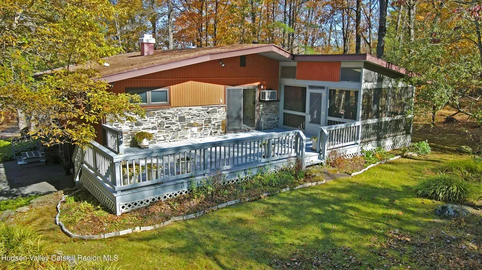 This lovely 3 bedroom, 2 bath home is set on 1.17 very private, wooded country acres. The setting is at once quietly tranquil and peaceful including a seasonal stream and pond and yet is very convenient to Woodstock Village insuring easy access to all of Woodstock's local amenities shops, galleries, music venues and restaurants. This beautiful home boasts a spacious open living area with lots of natural light streaming in through an expansive wall of windows. Spacious front and rear (with seasonal view of Overlook) decks and the large screened porch offer views of the surrounding woods and are ideal for relaxed enjoyment of the outdoors and for entertaining, too. The large finished walkout basement offers 500 square feet of versatile space that allows for many options such as a home office, an additional area for entertaining, additional bedrooms or an income producing rental unit. ...
