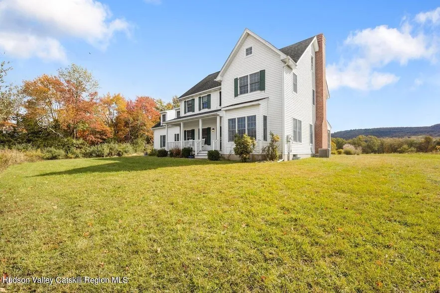 Explore this captivating colonial farmhouse, ideally set on 8.5 acres of picturesque land with uninterrupted, sweeping views of the renowned Shawangunk Ridge, Mohonk Preserve, and the majestic Catskill Mountains. The Cherry Hill Farmhouse was thoughtfully custom-built to embrace its natural surroundings, featuring expansive windows that fill the home with abundant natural light and offer breathtaking views from every room. Designed for both elegance and functionality, the home's spacious layout is perfect for entertaining. It boasts three bedrooms and three full baths, ensuring comfort and privacy for all. Outdoors, enjoy the custom-designed pool, second only in size to the famous Roosevelt pool, providing a luxurious retreat in your own backyard. Whether indoors or out, this property seamlessly blends sophistication with the beauty of nature for an unparalleled living experience.