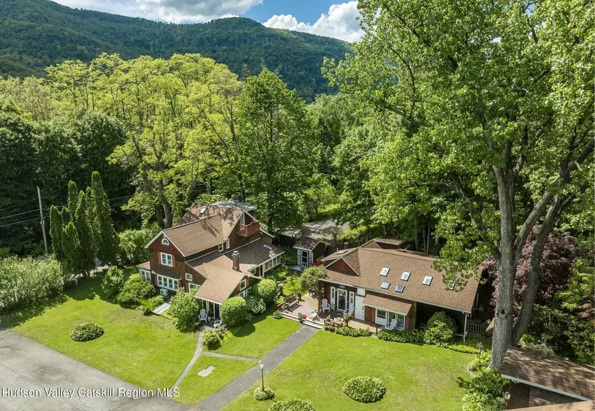 This beautiful estate must be seen. Owned by the same family for over 40 years, the compound has been lovingly expanded and restored. It is anchored by an 1870 farmhouse with many amenities. You enter the house to a wonderful chef's kitchen with cathedral ceilings accompanied by a walk-in pantry. There are granite countertops and top appliances. The first floor includes a spacious entertaining room and family room with a gas fireplace, as well as an en-suite bedroom and bath. The en-suite bedroom has a heated porch which leads to an outdoor deck. There are five different hardwoods used for the floors and three different hardwoods in the ceilings creating a unique style for each room. The sauna is also centrally located on the first floor. The second floor houses three bedrooms and a full bath. The third floor bedroom opens to its own balcony. Throughout the house are hardwood doors, French doors and multiple skylights. As you exit the house you come to the state of the art recording studio. It includes a full kitchen, full bath and an upstairs sitting lounge. This building can be easily converted to an additional living unit which matches the motif of the home. Leaving the studio you reach a free standing small home office. The next building houses two one-bedroom apartments, a four bay garage and a full workshop. You now reach the piece de resistance, a 20 by 40 foot in ground pool with heated pool house and changing room. The expansive gardens contain a storage cabin with an attached sitting deck offering expansive mountain views. Across Plank Road is an additional .6 acre parcel, included in this sale, providing private access to the Esopus Creek. Located just five minutes from Phoenicia, it is twenty minutes to Woodstock and a half hour to Kingston as well as both Bellayre and Hunter Mountains. You have the advantage of the nearby Ashokan Rail Trail offering year-round hiking and biking, as well as just enjoying one the country's most beautiful settings. It is also proximate to the Zen Mountain Monastery. If you are looking for a luxurious family compound, providing country living, please take advantage of this unique opportunity. We are also offering the property as a commercial recording studio with both the studio and home fully furnished and equipped.
