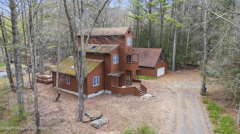 Imagine finding your own private haven at 18 Rocky Mountain Road in Kerhonkson. Tucked away at the end of a long, winding driveway, this contemporary four-bedroom, two-bathroom home offers a true sense of escape on just under ten acres of peaceful woodland. Built in the 1980s, this property is all about embracing tranquility and the beauty of its natural surroundings. The house itself, surrounding by woods, welcomes you with its high ceilings and an open, airy feel. The heart of the home features a striking wood-burning stove, promising cozy evenings and a warm ambiance. You'll find three comfortable bedrooms thoughtfully placed on the main level, while the primary suite offers a private retreat upstairs. And then there's the view - step out onto your deck and gaze over your very own tranquil pond, a perfect spot for quiet reflection. The full basement even holds the potential for a personal sauna, just waiting for your attention to bring it back to life. With a separate, oversized two-car garage, there's plenty of room for vehicles and hobbies. This isn't just a house; it's an opportunity to create a lifestyle, whether as a weekend escape or a full-time residence. With a little vision and some loving updates, this property could be truly extraordinary. Exploring Kerhonkson and Beyond:While your property offers incredible seclusion, you're also within easy reach of some fantastic local spots:Embrace Nature: Just a short drive away lies the renowned Mohonk Preserve, Minnewaska State Park Preserve and the dramatic beauty of the Shawangunk Mountains for even more outdoor adventures. For a gentler pace, the Ashokan Rail Trail which offers scenic paths for walking and cycling. Local Flavors: Indulge in the unique atmosphere and delicious cuisine at Inness, or savor the handcrafted ciders and orchard views at Westwind Orchard. For local brews and a farm-fresh experience, Arrowood Farm-Brewery is a must-visit. And for everyday charm and good food, Mill & Main in Kerhonkson is a local favorite. This peaceful retreat at 18 Rocky Mountain Road offers a unique blend of privacy and access to the best of the Hudson Valley.