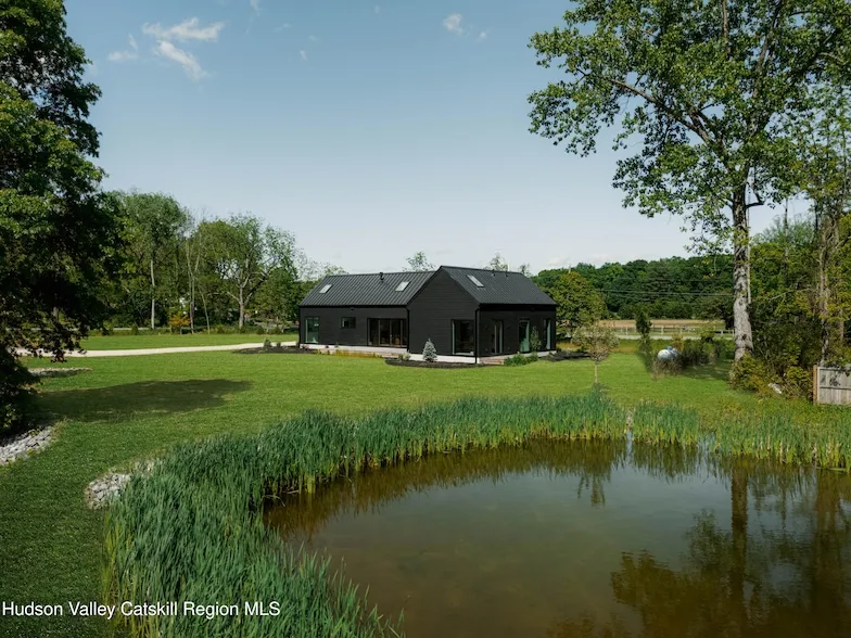 This exquisite home, masterfully designed, and flawlessly brought to life by Dynamism Built, epitomizes a refined curation of high-endfinishes, premium materials, and bespoke craftsmanship. The coveted upstate black cabin set amongst the most spectacular unobstructed mountain viewbackdrop, is an extraordinary fusion of modern luxury and enduring elegance. With every space meticulously designed to embody both functionality andstyle, no detail has been overlooked in this masterpiece of quiet luxury. The home has one wing housing a large primary suite complete with an office andluxurious bathroom, and the other houses guest bedrooms and entertaining spaces, all connected by a sleek glass corridor. Radiant heated floors runthroughout the entire home with Madera white oak flooring throughout. The primary wing is the ultimate sanctuary, spanning the entire east wing of thehouse. The office has large light filled corner windows, and could double as a nursery or extra guest room. The bathroom is a true showstopper, with the deepsoaking tub set perfectly in front of a large nearly floor to ceiling window, a luxurious glass enclosed spa shower featuring exquisite Makoto tiles importedfrom Italy and a Kohler Digital Shower System, offering state-of-the-art luxury and spa-like experience. Kohler fixtures are featured throughout the home. Asyou enter the primary bedroom, you'll be delighted with how the light elegantly pours in through the corner windows. You have sliding glass doors onto yourown private deck to the outside. The bedroom is a spacious king-sized room with a large closet. The field beside the lot in front of the mountain is protectedland, so you can be assured that the view from your giant picture windows will be unobstructed! This wing of the house also houses storage and mechanicalclosets, and a neatly tucked away laundry closet. Stepping into the open concept kitchen, dining, and living room, you'll be washed in south-facing. Thekitchen is a master class in great modern design, featuring dramatic Caeserstone counters paired with custom walnut cabinetry, a large island with Kohlersink, and a curated luxury appliance package. A centerpiece of relaxation, the living room features an automatic gas fireplace, and a custom built in walnutmedia cabinet. Large sliding glass doors leading off to the deck that faces the picture perfect vignette of your mountain view. On the west wing of the house,you'll find 2 guest bedrooms with soaring ceilings and tall windows, both with ample closets. The moody powder room features Thibaut Modern Resource 3Cork Forest Wallpaper, creating a sophisticated ambiance. This theme is carried over into the other full bathroom, with vertical green tiles and a glassenclosed Kohler shower. Nothing is builder grade here. High-end designer light fixtures were hand-sourced and chosen for each room, and includes notablebrands such as DWR, Rejuvenation, Sonneman, Andrew Neyer, and In Common With. Also included is a Restoration Hardware furniture package, includingliving room furniture, dining table and chairs, and primary bed and dresser (ask to see our furniture list for full details). Fast growing evergreen trees havebeen planted around the perimeter, and are accentuated with automated landscape lighting, creating a magical ambiance at night. With over 60 treesplanted, including dogwood, cherry, and evergreen trees, you've got a great head start on landscaping. A fortified drainage system has been installed and driveway with a custom walkway. Hydroseed grass, bluestone walkways and more have been added to the landscape. Situated in Saugerties, right in the heart of the Hudson Valley, thishome is less than 2.5 miles from the Total Tennis Club and the Lazy Swan Golf Course. Enjoy the charm and convenience of being just minutes fromSaugerties village and have easy access other towns 20-25 minutes away like Woodstock, Kingston, Catskill, and Hunter Mountain