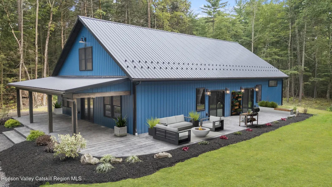 Another spectacular home just hit the market in the heart of the Catskills; The Black Diamond. Identified as Walnut Woods, this 2,160 square foot new construction home, boasts 3-bedrooms and 2-bathrooms. Its open concept, single level living space is exactly what you have been waiting for. Crafted and curated by Hamlet Builders, this model is nothing but a complete display of excellence. Arriving on site, you will recognize the great outdoor living space enjoying the covered porch and tremendous stamped concrete patio wrapping around the home. Greeted by 18-foot cathedral ceilings and paired with a pergola style entryway, the eye instantly catches the bold accents displayed in the entire home. Entering the home you will find 2 bedrooms fit for guests, office space or even full-time living usage. Moving forward into the main living area, find wood-stained ceilings, upscale Modern Forms lighting and a ventless propane fireplace is certainly the gathering space for all. Accompanied by black radiant heated, concrete finished floors, black doors and trim and a kitchen suited for a chef, this home really checks all the marks. Enjoy cooking with top-of-the-line Z-LINE appliances, plenty of counter space and even a fully lit breakfast bar, while enjoying the open concept of this home. Bringing the outdoors in, enjoy secluded nature views of the 2-acre parcel though the double sliding glass doors. The primary suite is more like a retreat with a tastefully designed diamond shaped accent wall, double closets and a step-down, marble-tiled rain shower with 7-additional heads. Moving outside to the wrap-around stamped concrete patio, you will find plenty of room to have an outdoor kitchen and entertaining space perfect for many summer memories to come. 805 Co Route 2 is backed by over 100 acres of privately owned land making the back yard a place where you can truly be in nature. Conveniently located, this home is just a short drive to local hiking hotspots, breweries and everything the Hudson Valley has to offer right at your finger-tips.