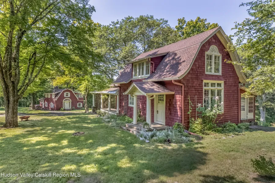 This 4-bedroom 2 bath main house, and 3-bedroom 1 bath cottage are located on 4.5 wooded acres with scenic views in the historic artists' hamlet of Cragsmoor, located on a ridge in the Shawangunk Mountains. The community is encircled by 24,000 acres of lands protected by the Minnewaska State Park Preserve with Sam's Point Preserve minutes from the property. The main house was built in 1907 by the architect Frederick Dellenbaugh for the artist Carroll Butler Brown and named the Falcon. Its living room is of chestnut post and beam construction with a chestnut staircase to the second floor, and a lovely working stone fireplace. Also on the first floor is a formal dining room, office area, kitchen, full bath and mudroom. The second floor has 4 bedrooms and a full bath. There are hardwood floors throughout. There is a basement with a laundry room and mechanical room that opens to a two-car ga...