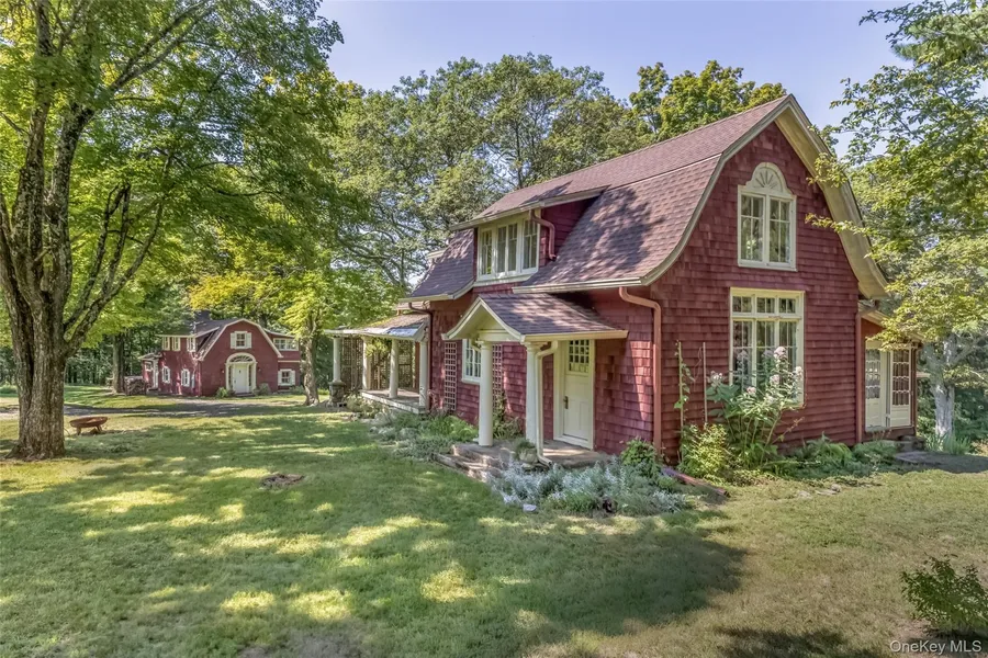 This 4-bedroom 2 bath main house, and 3-bedroom 1 bath cottage are located on 4.5 wooded acres with scenic views in the historic artists' hamlet of Cragsmoor, located on a ridge in the Shawangunk Mountains. The community is encircled by 24,000 acres of lands protected by the Minnewaska State Park Preserve with Sam's Point Preserve minutes from the property. The main house was built in 1907 by the architect Frederick Dellenbaugh for the artist Carroll Butler Brown and named the Falcon. Its living room is of chestnut post and beam construction with a chestnut staircase to the second floor, and a lovely working stone fireplace. Also on the first floor is a formal dining room, office area, kitchen, full bath and mudroom. The second floor has 4 bedrooms and a full bath. There are hardwood floors throughout. There is a basement with a laundry room and mechanical room that opens to a two-car garage. The cottage is equally full of charm fully renovated in 2021 with a working stone fireplace in the living room that flows into the kitchen with doors to a patio on one side and stone terrace on the other. Also on the first floor is a room suitable for a small bedroom or office. The second floor has a full bath, 2 bedrooms and a 3-season sleeping porch. In addition to wealth of nature, the property is centrally located for enjoyment of the cultural and culinary richness of the Hudson River Valley, while being an hour and forty-five minutes from New York City.