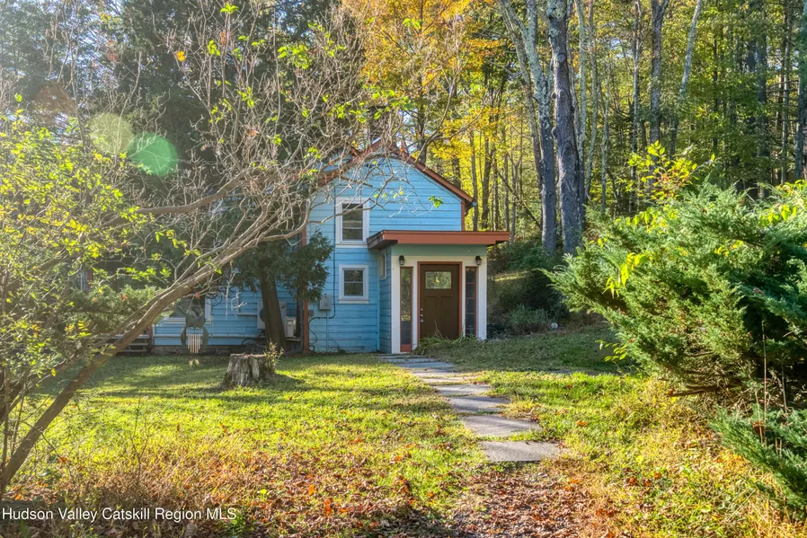 Major Price Reduction!!! Offering rustic charm with modern amenities, this two-story, move-in ready farmhouse is the perfect balance of country life and nature access with proximity to schools, entertainment, and Woodstock culture. Boasting 10 rooms perfect for hosting guests or family, this beautiful home built circa 1865 has been upgraded with many beautiful aesthetic features including a granite countertop kitchen, new wide plank pine floors and vintage pecan wood floors; exposed beams; a new bluestone patio with total privacy; a wood stove to keep you cozy on cold nights; and a large rocking chair porch. The downstairs has a large open-plan living/dining area and two additional large rooms office space and entertaining. Ascend the unique retro staircase to access four bright bedrooms. the downstairs bathroom is clean and modern, while the upstairs bathroom features a vintage clawfoot tub. The upstairs also has an unfinished storage room and a laundry room. Recent modernizations and improvements include all new windows; energy-efficient, high capacity mini-splits for heating and cooling; a new outdoor shed; full exterior paint; and full wiring for a whole-house stand-by generator. In addition to all this, this rolling two-acre property borders state land that allows access to limitless wooded forest to explore and hike. And if this property was not special enough, unverified local lore holds that this house has deep , classic Woodstock history with famous musicians including Jimi Hendrix having stayed and played there! The gorgeous outdoor space also features a vintage barn in need of total renovation or the footprint can be used to build an entirely new unattached guest house or artist's studio.
