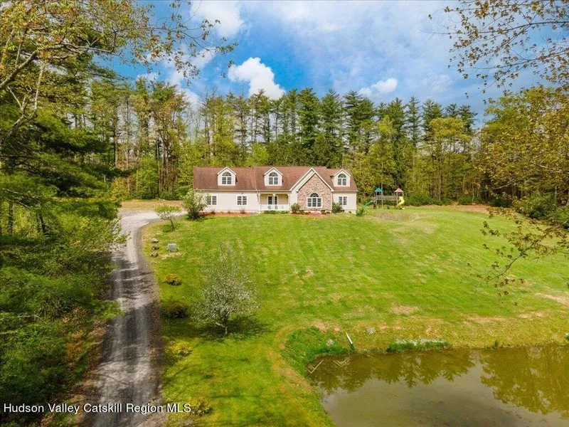 Land + square footage = instant equity. This property offers both in abundance. Unmatched Value: 20+ Acres, apprx 2932 Sq. Ft. Home, Stocked Pond & Pool - All at a Price Impossible to Recreate! Stunning and private 3BR/3BA Cape on 20+ Acres with Pond & Heated In-Ground Pool. Ideal property for those looking to homestead. A rare offering of land, space, and amenities-this extraordinary property combines over 20 acres of secluded countryside with a spacious apprx 2932 sq. ft. Contemporary Cape, priced far below what it would cost to build today. At the end of a lamp-post-lined driveway stretching nearly 1,200 feet, the home sits elevated on open lawns, bathed in sunlight, and overlooking a stocked pond with sweeping mountain views. The setting offers unmatched privacy yet is only minutes from Rosendale, Stone Ridge, Kingston, and historic Old Hurley, with quick access to major transportati...