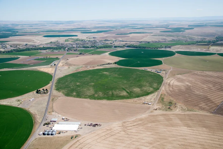 The land has been used for alfalfa. There are five grain bins that each total 14,800 square feet in the southeast section ...