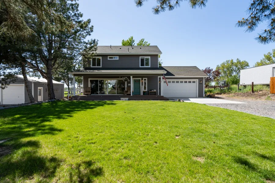 This is a beautiful farmhouse that is open and bright the minute you walk through the door! Don't miss out on this 3 bedroom, 2.5 bathroom, an office, attached garage and shop. There are 2 acres that feel so private, sprinklers, animal shelters and gorgeous landscaping. In the living room is a custom built fireplace and the kitchen has been updated with a new sink and butcher block counter tops. This is a place to call home!