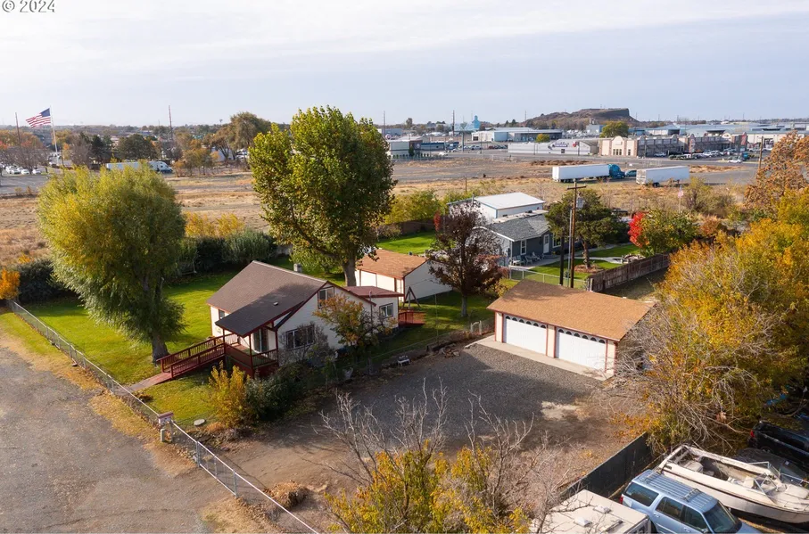 This beautifully updated home in Hermiston sits on nearly half an acre across two tax lots, offering rare space and flexibility within city limits. Whether you're looking to stretch out, build equity, or explore multi-generational living, this property offers a unique opportunity-including prime potential to add an ADU or mother-in-law suite. The irrigated yard is expansive and private, with a mature orchard and room to create your dream outdoor retreat-or lay the foundation for a second living space. A large detached double-car garage, separate shop, and storage shed provide ideal space for hobbies, projects, or even future conversion. There's even designated RV parking, so you've got room for all the extras. Inside, no detail has been overlooked. Recent updates include a new roof (just a few years old), all-new lap siding and exterior paint completed this year, updated vinyl windows upstairs, and a beautifully remodeled kitchen that blends modern style with everyday functionality. A new gas water heater and sewage grinder add peace of mind for long-term comfort and performance. Enjoy the benefits of public city water and sewer, plus a sand point well that keeps the yard green year-round. Quietly tucked at the end of the road, this home offers a peaceful setting just minutes from shopping and town amenities. With space to grow and thoughtful updates already in place, this property is a rare find in Hermiston-schedule your showing today and explore the possibilities.
