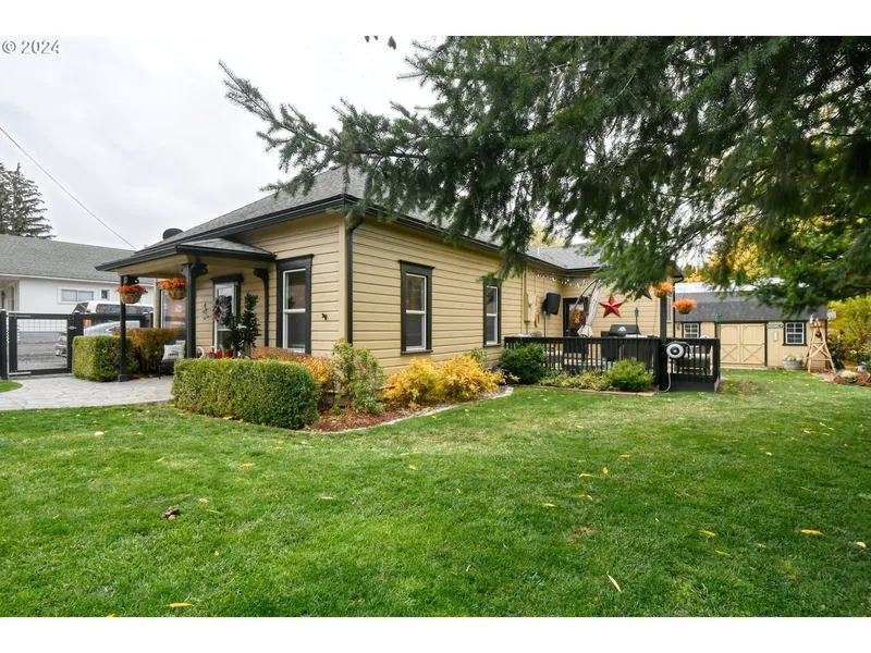 `You will find this charming bungalow in Weston, Oregon, nestled by Pine Creek. The 1214 sf(m/l) home is all updated with meticulous attention to detail. The interior and exterior paint in warm tones, to the revamped gray/brown wood laminate flooring throughout, and the charming Country kitchen with soft close drawers and farm house sink. The inviting primary bedroom features a tiled bathroom and spacious walk-in closet. For year-round comfort, the home boasts three ductless mini-split heat pumps for heating and cooling, complemented by newer double-pane vinyl windows. Step from the kitchen outside to the spacious back deck. On the deck you can BBQ or sit and relax while taking in the perfect setting, relishing the serene sounds of the creek and enjoying the beautifully landscaped yard. Additionally, there is a concrete parking slab with 50-amp service dedicated to your RV, all surrounded by a new fence for added privacy and to keep those four legged friends in the yard. The property includes three storage buildings, the largest provides ample space for storage or a workshop catering to the DIY enthusiasts and hobbyists. Contact your real estate agent today.
