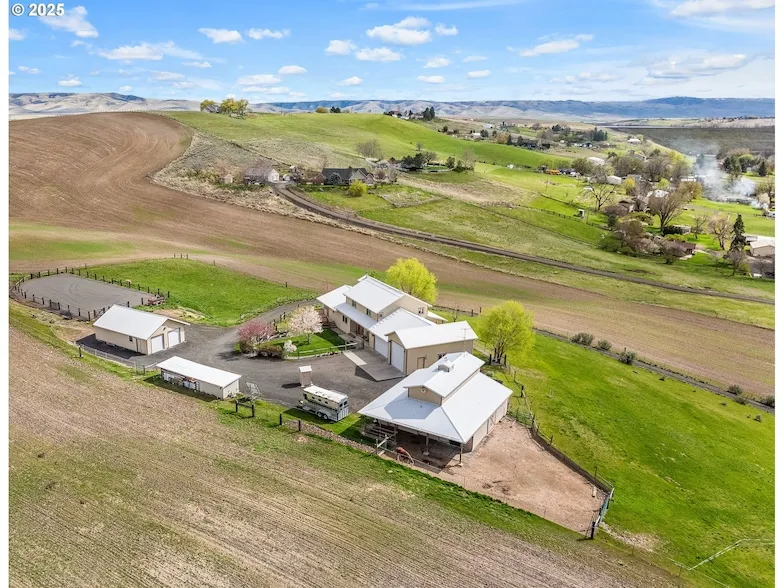Perched up high on the outskirts of Pendleton, Oregon famed for its rich history and Western charm this remarkable 4-acre property combines country living with modern appeal and breathtaking views of the surrounding countryside. The living area includes the original 5 bedroom, 3 bath home (2524sqft) with a spacious 1 bed, 1 bath ADA compliant mother-in-law suite addition (832sqft) completed in 2017. Together, the home offers 3350+ sqft of living space, two beautiful kitchens, two master suites, and three separate decks to relax and enjoy the Eastern Oregon sunrises and sunsets. The property offers exceptional storage facilities and outbuildings including the large, insulated 1232sqft attached garage that accommodates 2 cars and an RV, a detached 864 sqft garage, insulated and large enough for up to 4 cars, a 36x36 barn with a loft and 1656sqft of space, and a professionally installed horse arena (110x60) designed with proper drainage and 3 inches of sand, ideal for riding and training. The geothermal ground-source heating and cooling system ensures year-round comfort with separate units for upstairs and downstairs this system is truly the Rolls Royce of heating and cooling homes. The property also boasts a high-output well with both regular and solar-powered pumps, ensuring an abundant water supply, and a pump house with additional storage and firewood bays. A water softener and reverse osmosis system are set up to ensure pure and clean water throughout the house. An automatic gate for the long driveway adds additional security. The well-maintained grounds feature underground sprinklers and drip lines to keep the landscaping lush and healthy, and gutter guards have been installed to minimize maintenance on the house. With its combination of spacious living, equestrian facilities, and prime location outside of Pendleton, this property offers endless possibilities. Schedule your private tour today and experience this Pendleton gem for yourself!