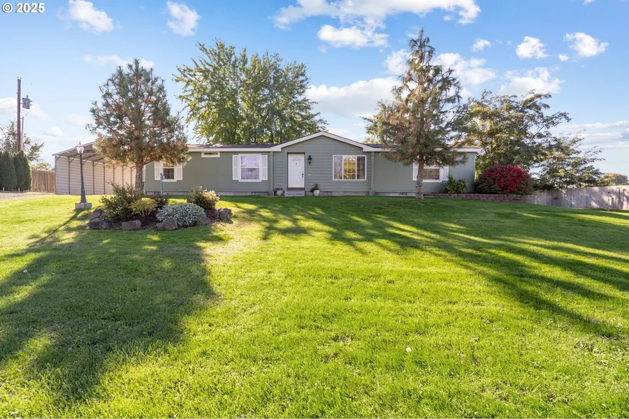 Well-cared-for and move-in ready, this 1,782 sq ft, 3 bedroom, 2 bath home sits on a private and fully fenced .82-acre lot with .7 acres of water rights through Hermiston Irrigation District-ideal for those seeking space, privacy, and the functionality of irrigated land in a rural setting. Inside, the home features two spacious living areas and LVP flooring throughout most of the home, with minimal carpet, making it both comfortable and low-maintenance. The exterior has been freshly painted, boosting curb appeal and showcasing the pride of ownership found throughout the property. The layout is well-designed with generous living space, great natural light, and flexibility to suit a variety of needs-whether it's entertaining guests, working from home, or relaxing with family. Outside, the .82-acre lot is landscaped with established trees and open space, offering a peaceful outdoor environment. Underground sprinklers cover most of the yard, with the bulk on timers for easy management. With .7 acres of water rights through Hermiston Irrigation District, you have everything needed to support lush landscaping, gardens, or even hobby livestock. An oversized carport with a concrete floor provides covered parking and additional storage or workshop potential. The property is fully fenced, offering safety and privacy for animals, kids, or outdoor projects. Located in a quiet and more remote area, this property offers the freedom and serenity of country living-an excellent opportunity for buyers looking to enjoy open space and self-sufficiency without the close-in hustle of town.