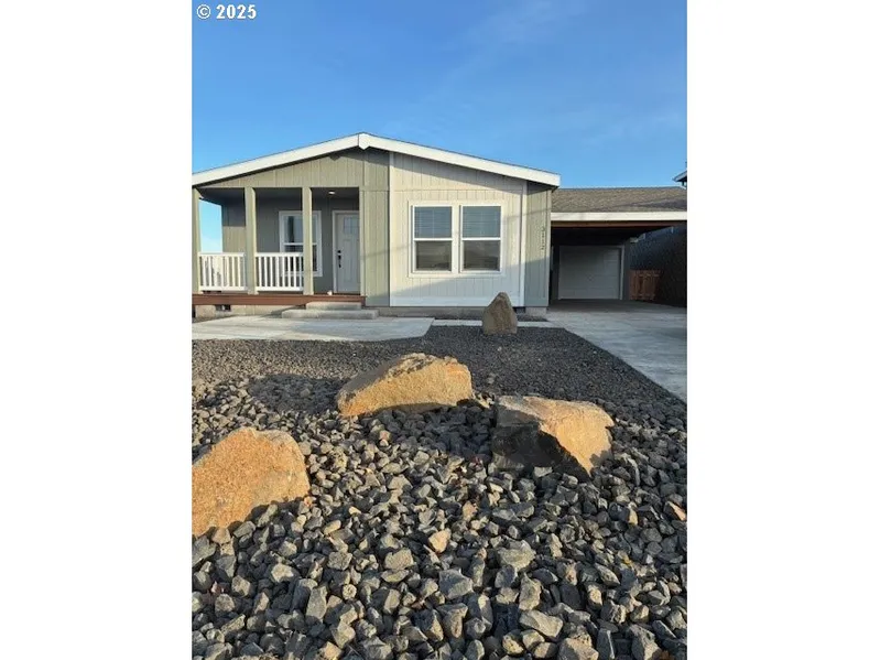 Reinforced foundation ensures long term strength and stability in this never been lived in 2024 Marlette. Welcome to your 1493 Sq. FT m/l brand new dream home, beautifully crafted, Energy Star Certified for year-round comfort and efficiency with fenced yard. This modern 3-bedroom, 2-bath home is perched in a prime spot offering sweeping views of Pendleton and surrounding mountains. Step inside to soft, neutral tones and recessed lighting throughout, creating a warm, inviting atmosphere. The living room and primary suite are pre-wired for ceiling fans, and a spacious bonus room provides the perfect flex space for a home office, formal dining room, or creative studio. The island kitchen bar is ideal for casual dining and entertaining, with built-in electrical, storage, and seating for stools. Enjoy the convenience of forced air heating and cooling, durable double-pane low-E vinyl windows, and the added protection of a covered carport and garden shed. Seller is in process of adding electrical to garden shed, landscaping, and UGS. Whether you're soaking in the views or enjoying the flow of this thoughtfully designed interior, this home checks every box. Central air conditioning will be added at sale of home, prior to closing. Schedule a showing today.