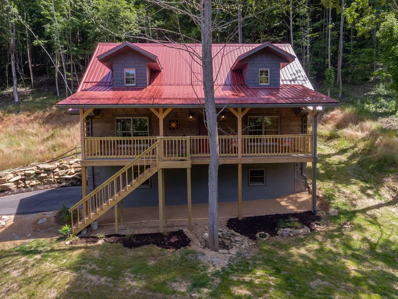 ***New price includes adjacent 0.93 acre lot*** New construction ***TRUE*** log home nestled in the scenic East TN mountains30 minutes from Asheville, NC & Johnson City. This 2 bed/2.5 bath home offers panoramic views of the nearby Big Bald Mtn of the Blue Ridge to the east and Great Smoky Mtns to the west. Wildlife such as deer, turkey, bear, etc abound and fall leaves look like apainting. Enjoy the relaxing sound of nearby year-round Higgins Creek and gorgeous views as you sip on your coffee/tea on the large front porch. Once you enter the cabin, you'll be greeted by an open concept floor plan with hand-scraped oak flooring and a cozy gas log stone fireplace. The great room and kitchen can accommodate multiple cooks with its large main sink and all GE stainless appliances. A huge granite island is perfect for entertaining & hosting. Youwill love the coffee bar complete with a prep sink and storage areas. Just off the kitchen thru a pocket door is a mud room area with laundry & a half bath. Rounding out the main floor is the master bedroom & personal bath with granite/dual sinks and custom tiled walk-in shower. Upstairs you will find a large open loft that can be used as a sleeping loft or reader's nook, as well as a full bath with tub/shower & second bedroom that can be converted into 2 bedrooms if desired. Central HVAC and multiple ceiling fans provide year-round comfort. The basement is unfinished to meet your needs with a 1 car garage, walk out access to thedriveway, and is pre-plumbed for a bathroom. Other outside features include multiple parking spaces, a large natural rock wall, beautiful landscaping, as well as a tranquil patio area in the back that's perfect to sit outside or entertaining. The paved driveway splits with one that leads to the main level of the house & other one to the basement door with access to the front porch. HOA general assessment is $50-$100 annually. ***Buyers/buyers agent to verify all information**