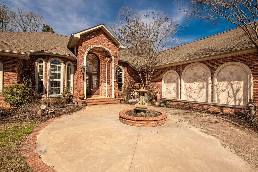 This custom built home located in Timber Hills Subdivision boasts a Beautiful Hand-Crafted front door made from Spanish Cedar. Cut glass highlights the upper & lower sections of the 17' high entryway with the rest of the home featuring 10' & 12' ceilings with hand-crafted arches and columns. The columns were painted by a local artist, Darrin Riley and match the granite counter tops. Entry elongated with gas lamps and fountains within the circle drive. Kitchen cabinets were built on site utilizing solid maple crown molding with maple doors and additional trim fabricated from maple stock. Area behind gas stove is highlighted with Italian tile artwork made specifically for current owner. 8' doors and triple stack crown molding throughout home for Elegance! Master Bath features a custom walk-in shower with rain head and body sprays. There is a 26" deep tub highlighted by a fireplace with cus...