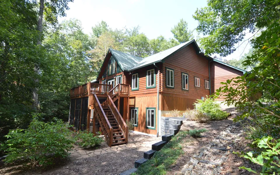CUSTOM DESIGNED & BUILT LOG CABIN IN THE MOUNTAINS OF NORTH GEORGIA! Peacefully and privately nestled in tall hardwoods, this warm 3 spacious bedroom, 2 bathroom log cabin offers an open floor plan, oversized kitchen with custom cabinets & gas cooktop, electric wall oven & large quartz counter topped island, great room with vaulted ceiling & exposed beams, stacked stone gas log fireplace, beautiful blend of wood & drywall, walls of windows creating a light atmosphere & enabling views of the surrounding nature, master on the main with huge master closet, master bathroom with dual vanities & walk-in shower, great room, office, large laundry room on the main level, x-large storage room, back deck & back screened-in porch, oversized 2 car garage and many more fine details.