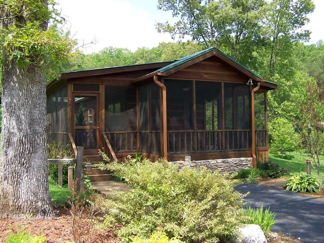 VACATION GETAWAY located in the Heart of Trackrock. Gorgeous setting, 1BR/1BA, all wood interior. Screened porches skirt this wonderful cabin. Open deck for BBQs, storage building set up as a small workshop/office. Wood blinds in windows. Excellent community water w/ one of the finest wells in the county. Paved parking. Sat dish, 4' shower in bath. Joins large rolling common area with fire pit. Very Nice.