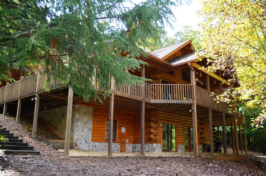 SUCHES, Woody Gap area. Lincoln Log Home. 6x8D profile. The Cadillac of LOGS. Fantastic Ranch home offers 3BR/3BA , with approx 3200 sq ft heated living space. Poured wall foundation. Main floor features an open plan w/ 2 master suites. Vaulted greatroom w/ Hearthstone Soapstone wood stove, Special order doors, wheelchair access, Hickory cabs & solid surface tops in kitchen. Lots of windows & doors lead to decks. Master ste offers dbl vanities, jetted tub & sep shower. 2 Car oversized Carport w/ pull down storage. Lower level has 2 car gar, den 3rd br/ba. Commercial generator 20KW. 2.28 acres w/ garden area. fruit trees.12x20 shed w/ RV hookups. Joins common area ponds and meadow. Wonderful Coopers Creek area of the North GA Mtns.