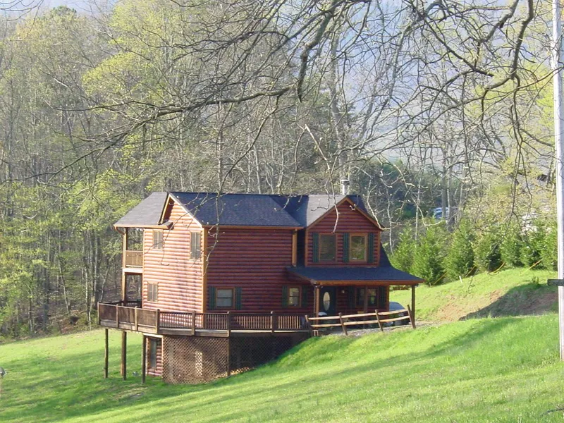 Log Sided , Quality Construction 2/2 Chalet on 2.23 Gorgeous acres. Wood Ceilings and Dormers, Exposed Beams. Quartz/granite countertops in kitchen plus stainless appliances. Hardwood floors. High Cathedral ceiling in Great Room. Wood-burning Fplc with Log Mantle. Lots of natural light. Laundry on main. Master suite has Private Balcony,Bath has jetted tub and sep shower, double vanities. Full unfinished Basement stubbed for additional bath. 2 water heaters. Great Garden areas and year-round views of creek and mountains. End of the Road Privacy. Large entertaining porches and decks. Level gentle yard for outdoor play. Very private setting.