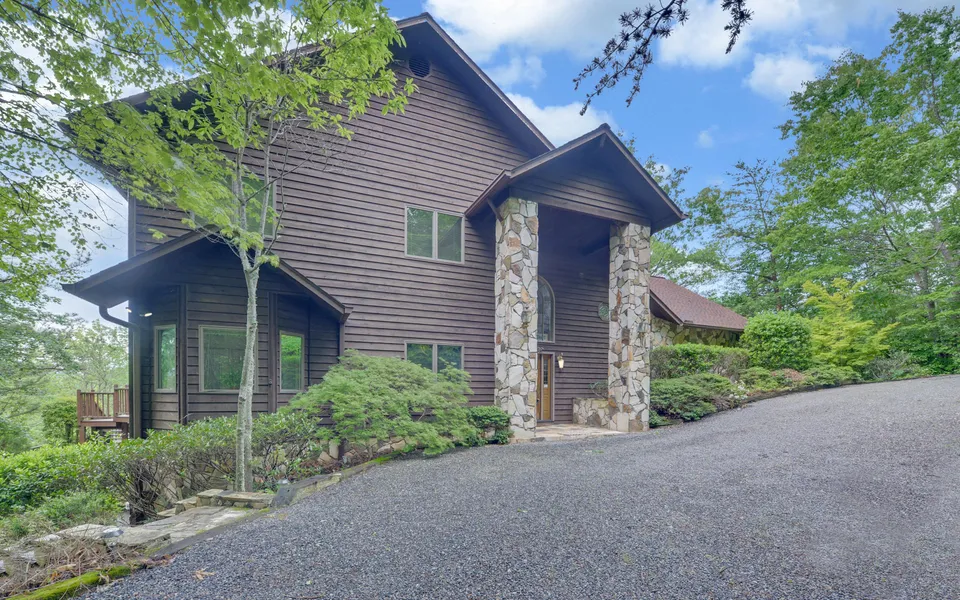 MOUNTAIN MAJESTY / CEDAR CHALET! Pride of Ownership in this Exceptional Mtn Chalet. 4.79 Wooded and landscaped Acres approx 3 miles to town. Anderson Windows & Doors, QUALITY!! 5BRs/3.5BAs. Soaring Cathedral ceiling w/ Rock wood burning fplc. Cook's Kitchen features dble ovens, 5 burner gas cooktop, bright lighting, bayed dining w/ lots of glass. Countertops w/ veg sink. Formal DR, Office/mudroom w/ built in desks. Large Master suite w/ jetted tub, tiled shwr, 2 commodes, built in dressers, dbl van. Tray ceiling. Large sliders to deck. Upper level has Massive office w/ surround desks & work space, guest bedrooms, bath, and Walk in attic for storage. Lower level features Game room w/ wood brng fplc, Wine Cellar, bedroom suite, workshop w/ benches & pegboard, 2 car gar, and patio/decks. Multiple, playful staircases lead you to the woodland paths throughout the property. Circular drive, Fantastic long range views, NO GRASS to MOW! Well maintained Family retreat for Many Years. 3 HVACs (2013) New roof (2014). FURNISHED.