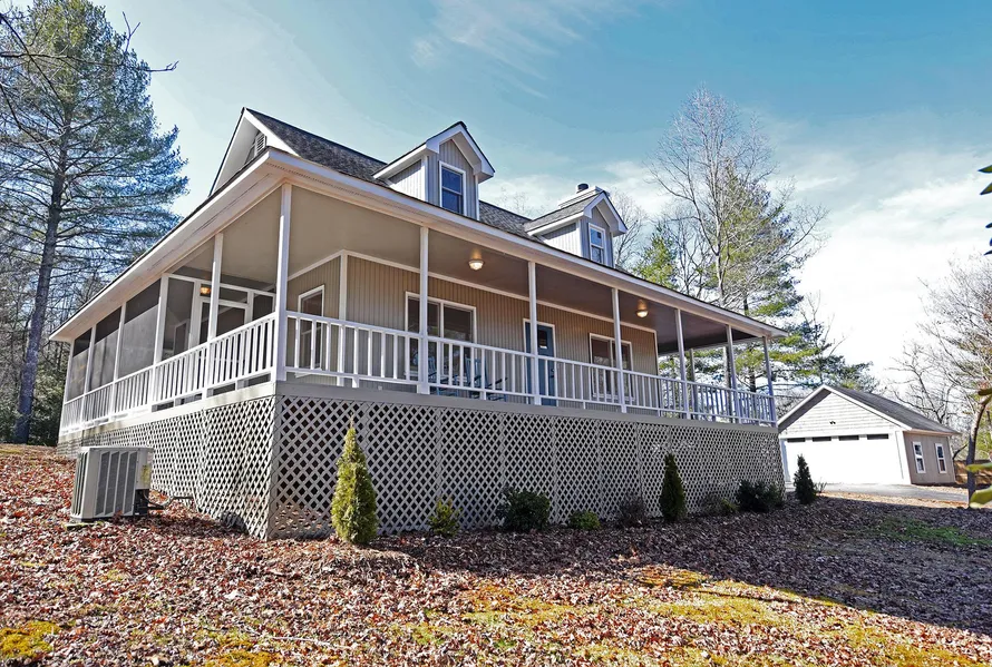 MAIN FLOOR HAS IT ALL. This Lake Access Gem sits on 1.6 acres & offers 3BR/2BA, Wheelchair ramp, wrap porches all around including a screened entrance porch off the Kitchen. Fantastic 2 Car Garage. Lots of Parking. MANY UPGRADES. Newly Painted inside and out, All new floor coverings. Master on the Main w/ Wonderful tiled step in shower. Open Kitchen w/ custom finishing, granite top, subway tiled backsplash, Pantry & storage closet. Cathedral ceiling in GRTRM w/ gas log fplc. Wrought Iron Bannisters. Upstairs offers 2 generous BRs, Full Bath, Big closet & storage. Roof 5.5 yrs old, HVAC 2.5 yrs old. Fresh Landscaping. Big Gentle Yard with Room for Play. Lake Access. White shed included.