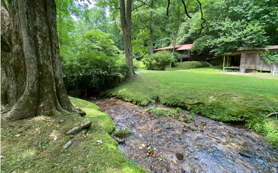 Return to Simpler Days and experience Real "Backwoods Bliss". Acreage, Affordable & Adorable. This Cabin sits on the Level Shoreline of a Sparling Stream that runs thru the center of a 3.35 Ac Tract (You own BOTH SIDES of the stream) framed w/Enormous Trees on the Banks. "Diamond in the Rough" 1984 Cabin w/"Thick" Pine Siding (from the Saw Mill), Sturdy Metal Roof, Central Heat, Original Hardwood Floors. Pine Interior Walls and Drywall Ceiling. Kitchen features a "One Piece" Antique "Porcelain" Extended Counter w/Built in Sink, a Rock Pedestal for Wood Burning "Cooking" Stove & Refrigerator (Extended Counterbar) & Big Utility Room (off Kitchen) also used as a Walk in Pantry w/Washer/Dryer Hook Up. Full Bath (Tub w Fiberglass Walls/Window, Vinyl Floor Single Vanity). 2 Bedrooms (one w/large closet). 12' Covered Porch & Open Deck. "Most" Furniture Included. A Rocky Branch fall along the si...