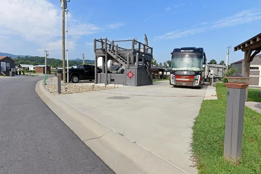 Fantastic CCRV lot with a total outdoor living area and kitchen for your enjoyment and plenty of parking for the largest RV rigs. Lot 174 is also Tiny Home Approved! Take in the beautiful long-range views on your double-decker party deck! The party deck also contains a fully equipped outdoor kitchen on the bottom level with granite countertops, running water, a refrigerator, a TV, a gas grill, a cooktop, and even a fireplace!! Make this lot even more special with the abundance of space for a shed, workshop, or a private gazebo and hot tub area. The Coach in these pics is not included in the sale. Watch the video here