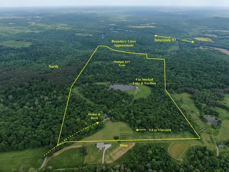 Most of the property is wooded and rolling hills with several acres of tall fescue suitable to cut hay off and run a few head of cattle on. There are several ATV trails that takes you to the heart of some good deer and turkey hunting. For many years in the past and until recently, the owners have leased out deer hunting. The area can easily accommodate 6+ hunters. There are 357 acres of Shawnee National Forrest to the north and east that borders this property that expands the hunting area. There is a cave and waterfall on the property. Close by is a Zipline facility and cabin rentals. This property has all the beauty of Union County's hill country and vast forests, yet it is just a few minutes from Interstate 57.
